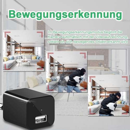 Überwachungskameras, HD 1080P Mini Kamera USB Ladegerät Überwachungskamera, Videorecorder, Kontinuierliche Aufzeichnung und Bewegungserkennung, USB Ladefunktion, Innen/Büro/Geschäft Überwachungskamera