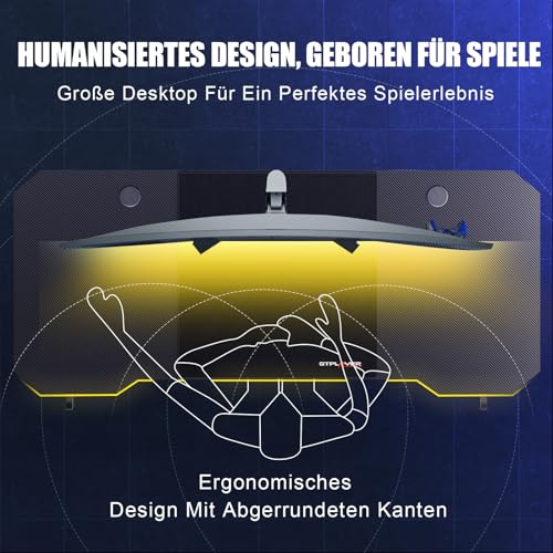GTPLAYER Gaming Tisch, Gaming Schreibtisch 120 x 60cm, PC Tisch Gamer Tisch mit LED, Stabiler Computertisch mit Kopfhörerhaken, Schwarz