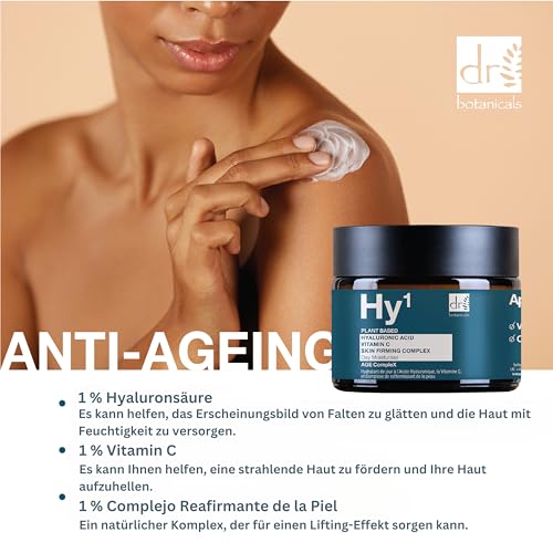 Dr Botanicals Anti-Aging-Gesichtspflege mit Hyaluronsäure, Vitamin C und Hautstraffungskomplex | reduziert Falten, hellt die Haut auf, spendet Feuchtigkeit und steigert Geschmeidigkeit – Ihre