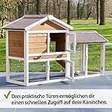 zooprinz moderner Hasenstall, Kaninchenstall – aus massivem Vollholz ideal für draußen -Einfach zu reinigen Dank der tollen Kotschublade mit natürlichen Farbe in braun-weiß gestrichen