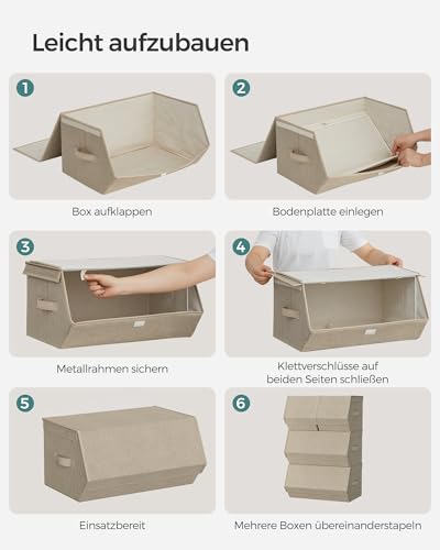 SONGMICS Aufbewahrungsbox mit Deckel, 4er Set Kleiderschrank-Organizer, stapelbar, Faltbox mit Magnetverschluss, Stoffboxen Aufbewahrung für Kleidung, Bücher, sandbeige RLB022Y02