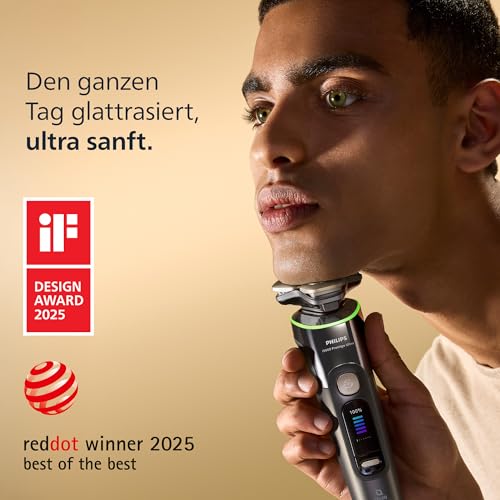 Philips Rasierer i9000 Prestige Ultra, Nass- und Trockenrasierer für Herren, dunkelgrau, Druck- und Bewegungssensor, Trimmeraufsatz, Ladestation und Reiseetui (Modell XP9402/11)
