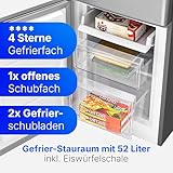 Bomann® Kühlschrank mit Gefrierfach | Energieklasse C | 143cm | Kühl Gefrierkombination leise 40 dB | 3 Ablagen & 2 Schubladen | Türanschlag wechselbar | 173L Kühlgefrierkombi | KG 7359 inox