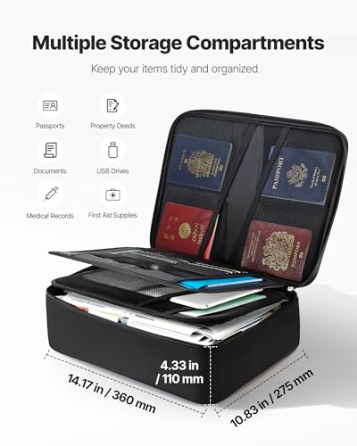 VEVOR feuerfeste Dokumentenbox Dokumententasche, 1000 °C wärmeisolierte, wasserfeste Dokumentenaufbewahrungsbox mit Schloss, tragbare & mehrschichtige Aktentasche für Reisepässe wichtige Dokumente