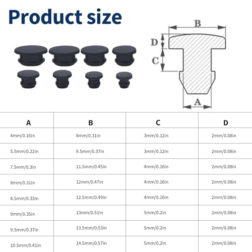 40 Stück Gummistopfen, Lochstopfen Schwarz Verschlussstopfen Rund Silikonstopfen Gummistöpsel wasserdichte Gummi Stopfen für Löcher 4/5.5/7.5/8/8.5/9/9.5/10 mm Innendurchmesse