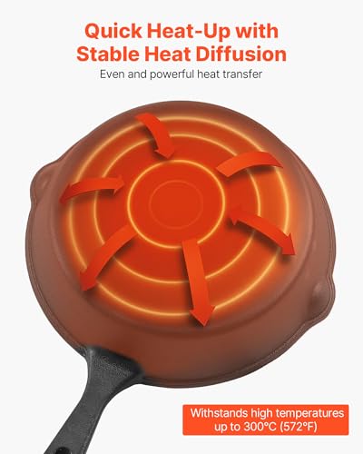 VEVOR Gusseisenpfanne Bratpfannen-Set, Hochleistungs-Bratpfannen mit hitzebeständigem Griff, Kochpfanne, Küchenkochgeschirr, geeignet für Backofen Gas Elektro Schwarz (160/220 / 265 mm)