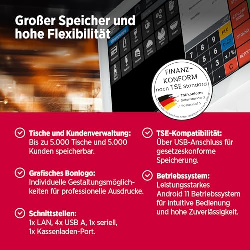 Olympia TS10 | Touchscreen Kassensystem für Gastronomie & Einzelhandel | Android Kasse mit Scanner & Kundenanzeige | Registrierkasse mit 10,1 Zoll Display (Weiß)