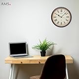 AMS 5977 Wanduhr 42 cm – geräuscharmes Funkwerk, Vintage Retro Funkwanduhr mit römischen Ziffern, analoge Funkuhr aus Acrylglas, große Wanduhr für Wohnzimmer, Küche, dekorative Uhr im Antik Design
