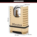 MASTER LOCK Hochleistungs-Vorhängeschloss aus Massivmessing [geschlossener Bügel][Zahlenschloss] M1177EURD – rostbeständig, sehr widerstandsfähig und wasserfest