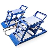 BITUXX® 2 Stück hydraulik 2,7T Auto PKW KFZ Auffahrrampen Set mit Wagenheber hydraulisch Höhenverstellbar Wartungsrampe Hebebühne Rampe Auffahrrampe Auffahrbock Blau
