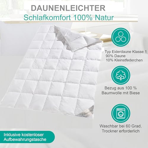 Daunendecke Typ Eiderdaune Silverstar 90/10 Daune Klasse 1 Ganzjahresdecke mit Außensteg leicht und kuschelig deutscher Hersteller Klimaneutral hergestellt vom Bettenfachgeschäft (155x220 cm)