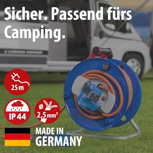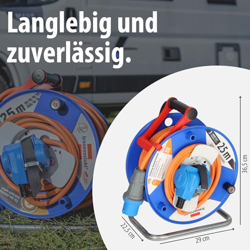 Brennenstuhl Camping-Kabeltrommel 25m, 230V,(H07RN-F 3G2,5 in orange, CEE-Winkelkupplung inkl. Schutzkontakt-Kombisteckdose, für den ständigen Einsatz außen IP44, Made in Germany)