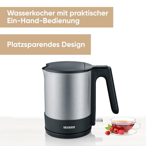 SEVERIN Wasserkocher, kompakt und leistungsstark, 2.200 W, Kunststoff, Edelstahl-gebürstet-schwarz, 1,7 L, WK 3409