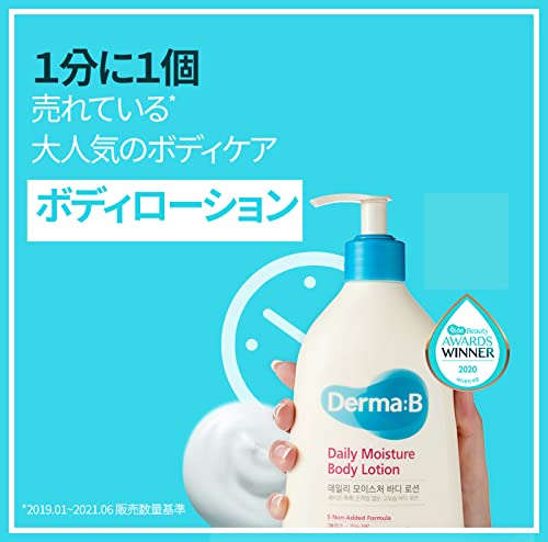 DERMA:B Daily Moisture Body Lotion 400ml, Langanhaltende Feuchtigkeit Körperlotion, Sanfte Feuchtigkeitscreme, Beruhigende Feuchtigkeitsspendend, Olivenöl Allantoin, MLE, Körperpflege, Koreanische
