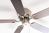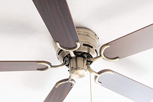 PEPEO - Kisa Deckenventilator ohne Beleuchtung | Ventilator mit Zugschalter in Antik-Messing mit Wendeflügeln in Eiche- und Walnuss-Holzoptik, Durchmesser 105 cm. (Farbe: Messing, Eiche/Walnuss)