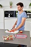 EMSA Clip & Close Glas Frischhaltedosen-Set, rechteckig, 0,45 u. 0,8 u. 2 L, 100 Prozent dicht, Glasbehälter spülmaschinen-, gefrier-, backofen-, mikrowellenfest, Rot, Transparent, N10509